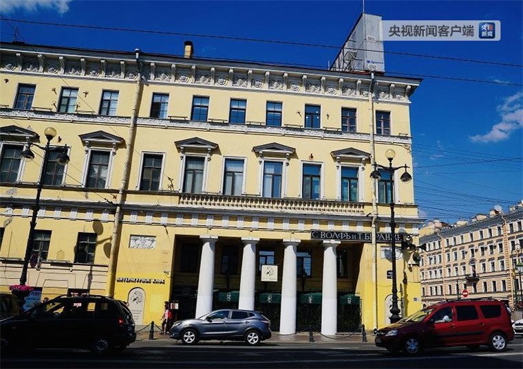 △涅瓦大街一角,莫伊卡運河旁,坐落著著名的“文學(xué)咖啡館”。當(dāng)年,陀斯妥耶夫斯基、舍夫琴科等人曾是這里的???。(央視記者拍攝)