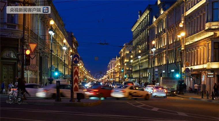 △入夜的涅瓦大街。(央視記者郭曉龍拍攝)