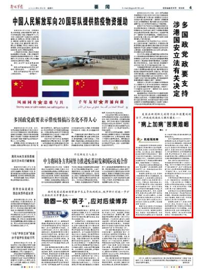這些做法不僅無(wú)法幫助美國(guó)抵御病毒,同時(shí)還會(huì)進(jìn)一步加劇嚴(yán)重的社會(huì)撕裂。弗洛伊德之死和蔓延美國(guó)各地的示威騷亂,難道不正是一些美國(guó)政客自己親手種下的惡果嗎?