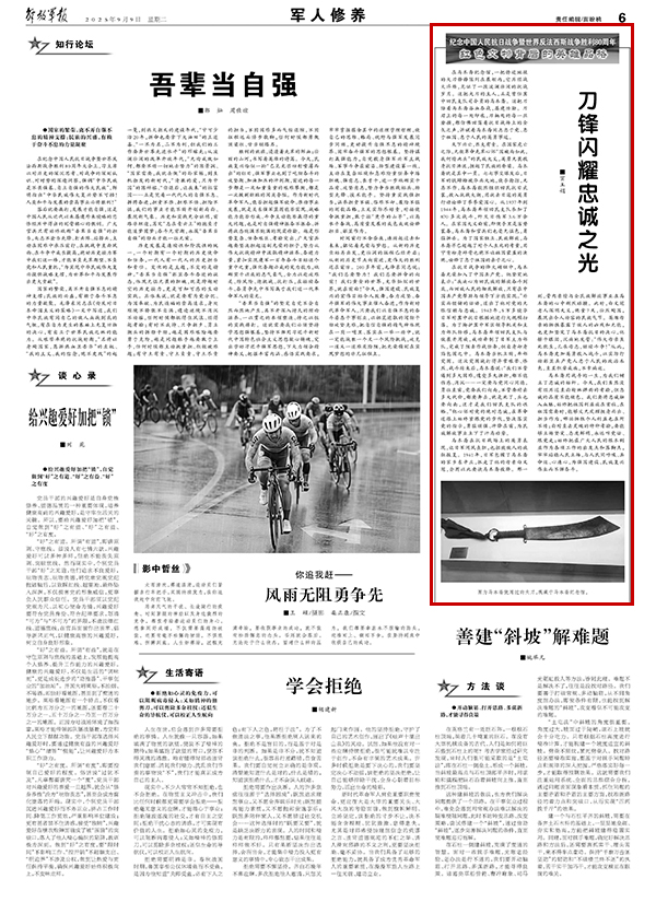 馬本齋用戰(zhàn)斗的一生,為我們樹立了忠誠的標(biāo)桿。今天,我們雖然沒有經(jīng)歷過直面槍林彈雨的考驗(yàn),但忠誠的品質(zhì)不能褪色。我們要將忠誠融入血脈,始終把祖國利益放在首位,在祖國需要時(shí),能夠義無反顧挺身而出、擔(dān)當(dāng)作為,哪怕犧牲個(gè)人利益也在所不惜;面對直擊靈魂的種種考驗(yàn),要能夠立場堅(jiān)定、態(tài)度鮮明,永遠(yuǎn)聽黨話、跟黨走;始終把最廣大人民的根本利益作為各項(xiàng)工作的出發(fā)點(diǎn)和落腳點(diǎn),牢牢站穩(wěn)人民立場,與人民同呼吸、共命運(yùn)、心連心,為強(qiáng)國建設(shè)、民族復(fù)興偉業(yè)而不懈奮斗。