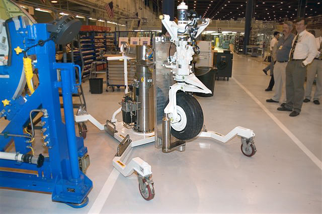 圖為F-35戰(zhàn)斗機(jī)的起落架,美國(guó)國(guó)防部稱中國(guó)零件也被用在了這個(gè)部件上