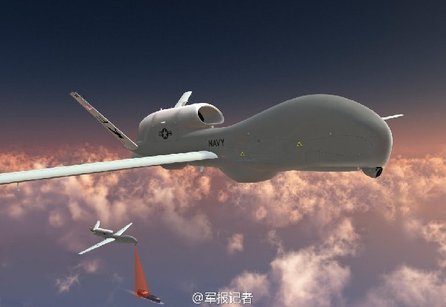 【美軍擬在日本部署人魚海神】近日,有媒體報(bào)道稱,美國海軍2017年將在日本沖繩部署最新型“人魚海神”無人機(jī)。該機(jī)被稱為海軍版“全球鷹”,高空長航時(shí)和低空偵察并重是其一大特點(diǎn),裝備多功能傳感器雷達(dá)系統(tǒng),能對下方海域進(jìn)行360度掃描,一次即可偵察近700萬平方公里海域。