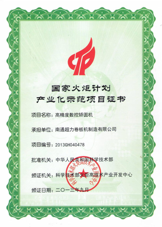 - 南通超力卷板機(jī)制造公司承擔(dān)國(guó)家火炬計(jì)劃