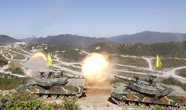 美韓聯(lián)合軍事演習(xí)出動(dòng)阿帕奇和k1坦克。(資料圖)