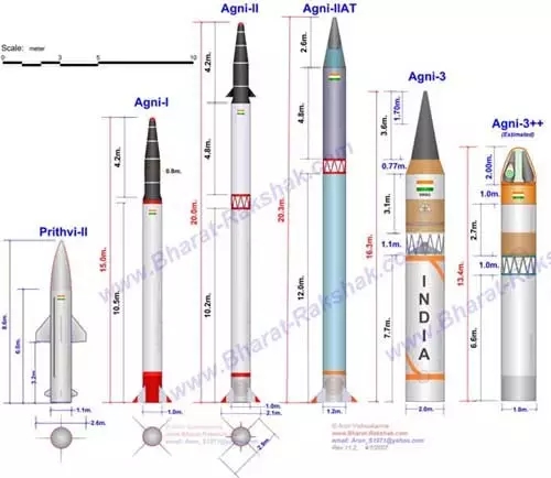 印度各型彈道導(dǎo)彈外形示意圖(資料)。