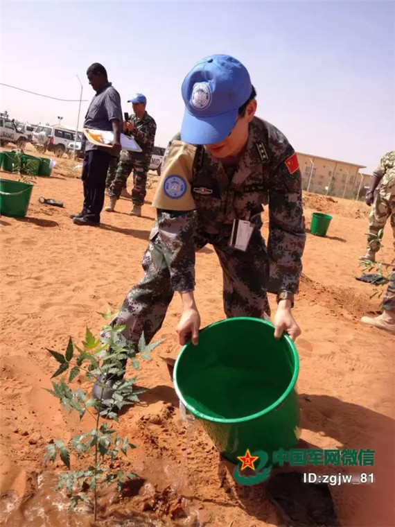 思鄉(xiāng)情:“茫茫大漠孤日懸,渺渺前路黃沙漫。莫嘆婦孺流亡苦,人間何處覓家園?!眲倓倎淼綘I區(qū)的時候,何教授這樣形容法希爾的生活。黃沙漫天,沙暴肆虐……但是這并沒有影響他對生活的熱情:司令部統(tǒng)一安裝的海爾空調(diào)、端午節(jié)的小米粽子、超級營地飯店店員騎的鳳凰牌二八自行車……在非洲能夠見到的“中國元素”都被何教授一一發(fā)現(xiàn)、記錄,不僅如此,他還在營區(qū)內(nèi)種小樹、栽西瓜……漸漸地,法希爾在維和官兵的建設下變得越來越有“人氣”了。臨走時,教授把自己的微信頭像換成了營區(qū)里種的的蓖麻樹,用“十年樹木,百年樹人”來紀念自己這一年難忘的“藍色”生活。
