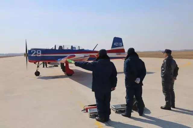 代玉起飛后,其他女飛行學(xué)員分批駕機(jī)升空。5分鐘后,代玉駕機(jī)以標(biāo)準(zhǔn)的“輕三點(diǎn)”動(dòng)作著陸。“連續(xù)!”指揮員緊接著下達(dá)命令,代玉又駕駛飛機(jī)加速滑跑、拉桿、升空?!?分!”現(xiàn)場(chǎng)評(píng)判的教員給出滿分。