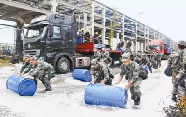 2015年4月6日,漳州古雷PX事故救援中的解放軍官兵