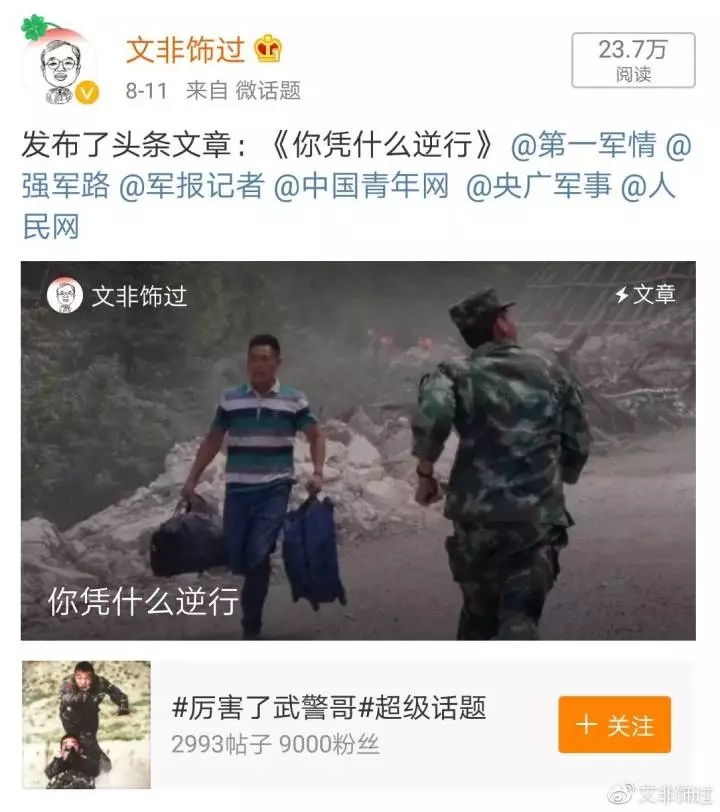 這名“最美逆行”的士兵叫張國全,天塌地陷的那一刻,他轉身沖進死亡的入口。他為什么優(yōu)先?他憑什么逆行?因為那身鮮艷的迷彩。