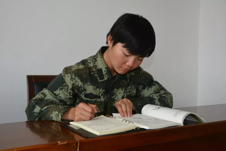 在部隊(duì)第一次文化預(yù)考公布成績后,她看到了自己與其他同志的差距,于是她給自己定下了這樣的計(jì)劃:不論白天訓(xùn)練多累,都堅(jiān)持每天做完一套試卷并修改完錯(cuò)題再睡覺。