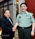 5月24日晚,正在老撾出席第六次中國—東盟防長非正式會晤的國務委員兼國防部長常萬全上將在萬象會見了泰國副總理兼國防部長巴威上將。李曉偉攝