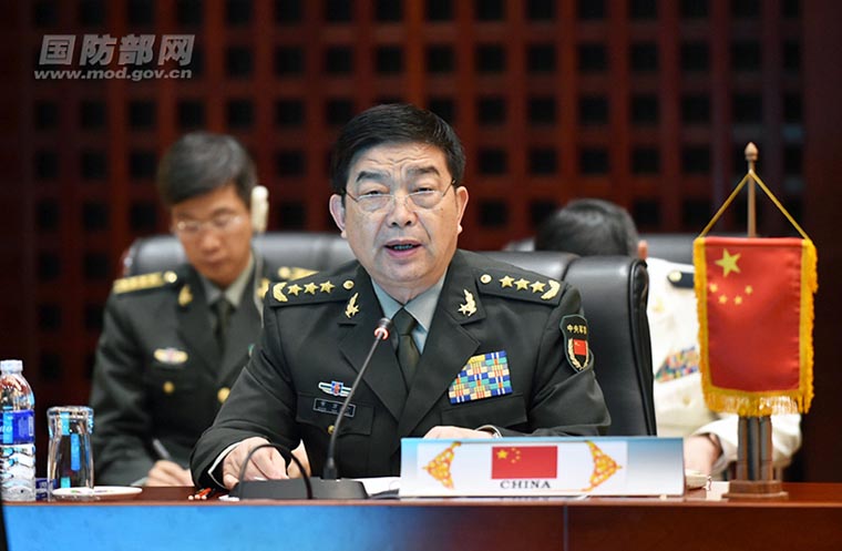 5月25日下午,國務委員兼國防部長常萬全上將在萬象出席了第六次中國—東盟國防部長非正式會晤。圖為常萬全發(fā)表講話。李曉偉攝