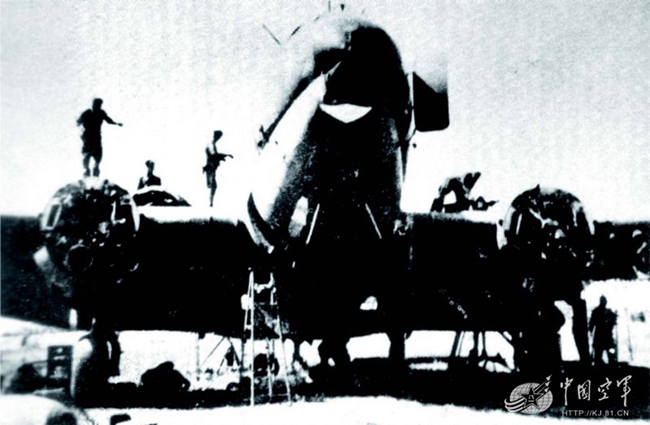 機(jī)務(wù)人員給轟炸機(jī)做機(jī)務(wù)準(zhǔn)備。