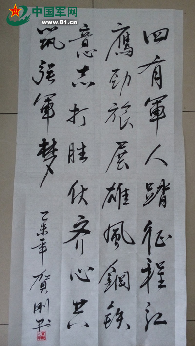 作品含義:紅鷹部隊自組建以來,始終堅持用“有靈魂、有本事、有血性、有品德”的新一代革命軍人標準,培育官兵始終成為黨領導下的統(tǒng)一的意志、堅強的團結和鐵的紀律的人民軍隊;時刻瞄準打贏目標,勤學苦練,精武強能,不斷提高打贏本領;不斷強化使命擔當,敢于拼搏挑戰(zhàn),敢于流血犧牲,敢于在強軍實踐中摔打磨練,攻堅克難完成任務;繼承發(fā)揚我軍的優(yōu)良傳統(tǒng),嚴守紀律,令行禁止,全心全意為人民服務。