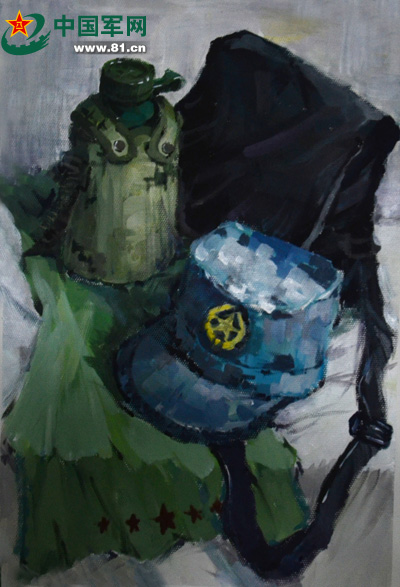 作品含義:穿上軍裝、打起背包、背起水壺、跨上背包、扛上沖鋒槍帶起帽子向陣地出發(fā)。軍裝代表形象、背包代表力量、水壺代表生命、帽子代表保護、沖鋒槍代表責(zé)任。我們扛起責(zé)任用生命的力量時刻保護國家、保護人民,維護世界和平。我們時刻銘記責(zé)任在肩。