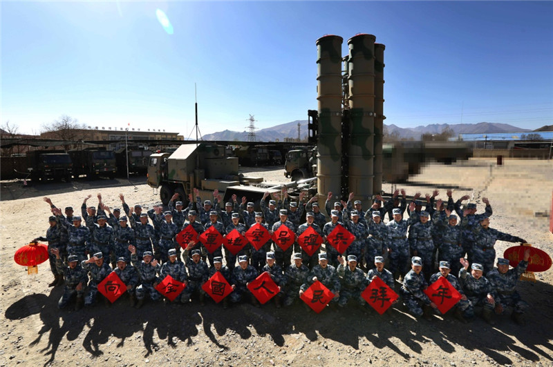 2月3日,西部戰(zhàn)區(qū)空軍地空導(dǎo)彈兵官兵向全國人民拜年。新華社發(fā)(劉暢 攝)