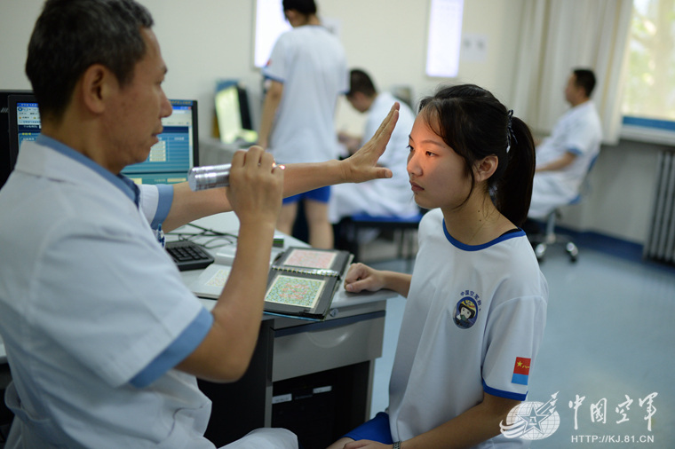 參加定選檢測的女學生進行眼科檢查。余紅春攝