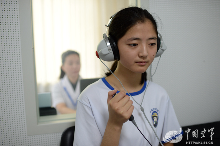 參加定選檢測(cè)的女學(xué)生進(jìn)行電聽力檢測(cè)。余紅春攝