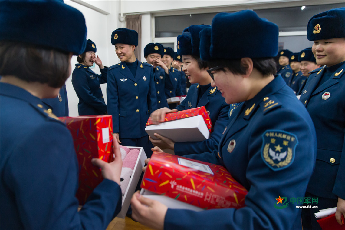 連里為帶兵班長(zhǎng)準(zhǔn)備了小禮物,由新兵遞給她們,班長(zhǎng)們特別開(kāi)心。