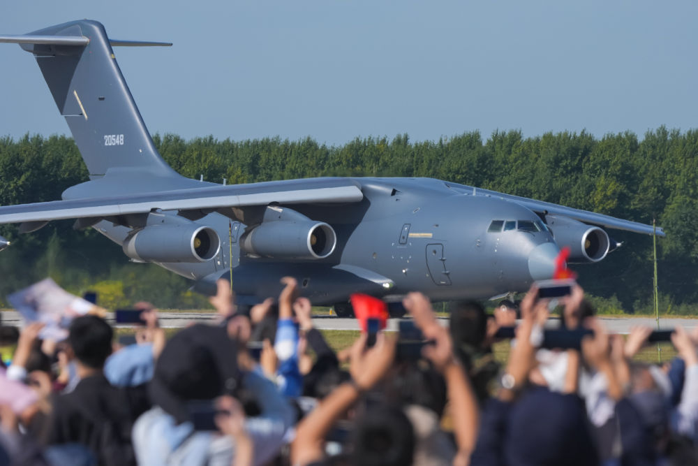 ↑9月19日,觀眾在現(xiàn)場拍攝運油-20A。新華社記者 許暢 攝