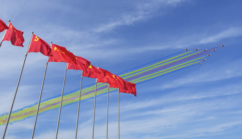 ↑9月19日,轟-6雙機編隊進(jìn)行飛行展示。新華社記者 張楠 攝