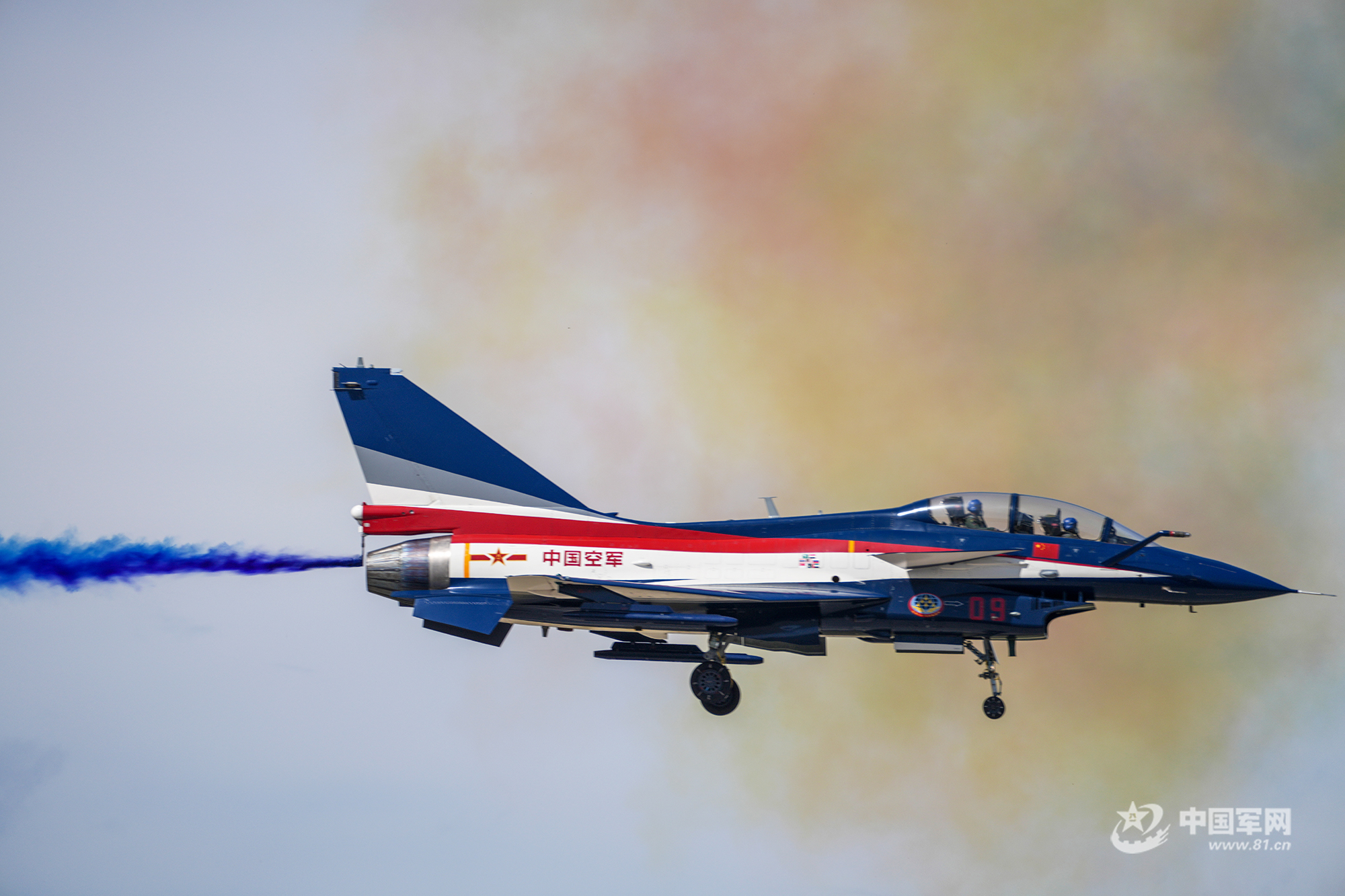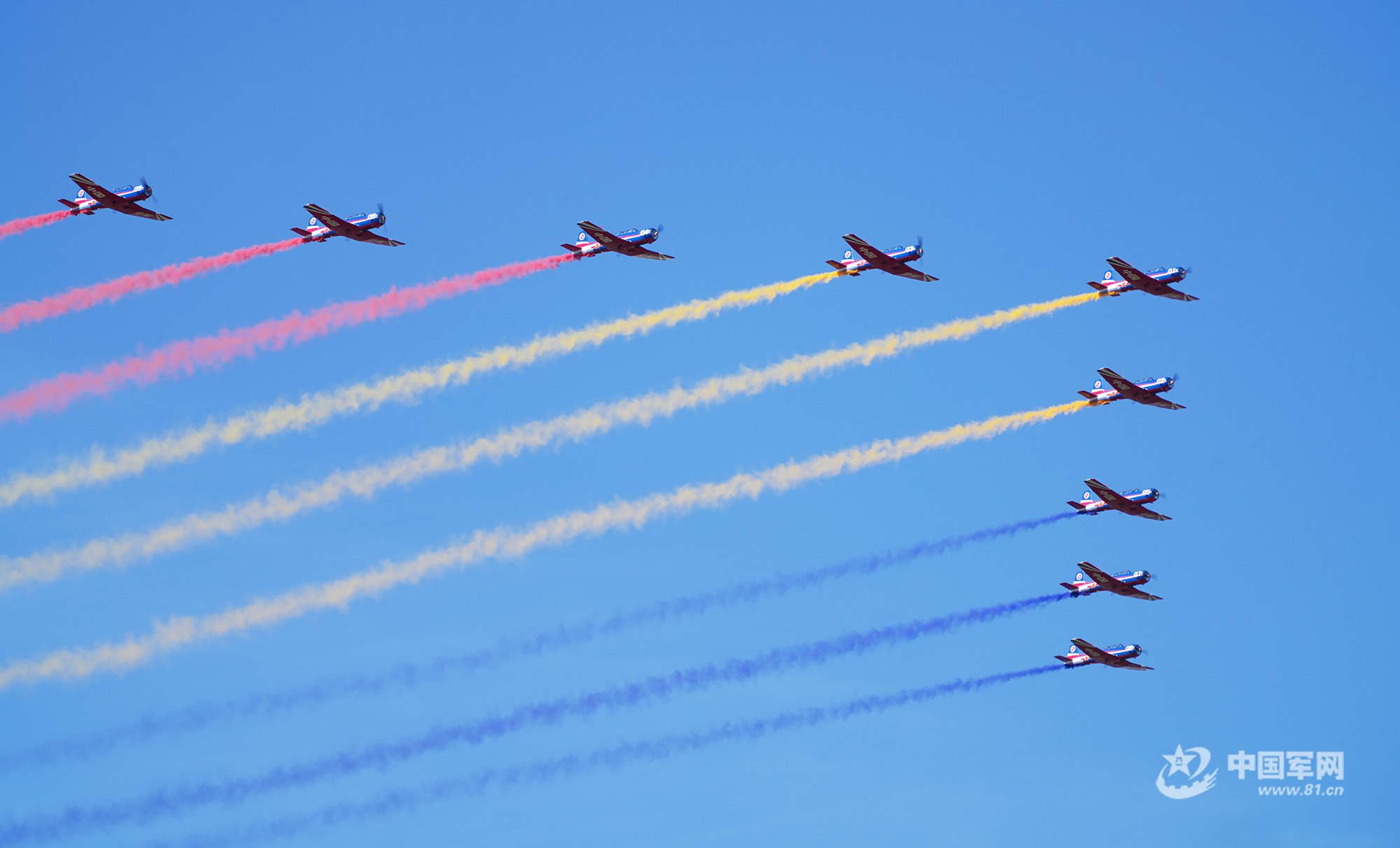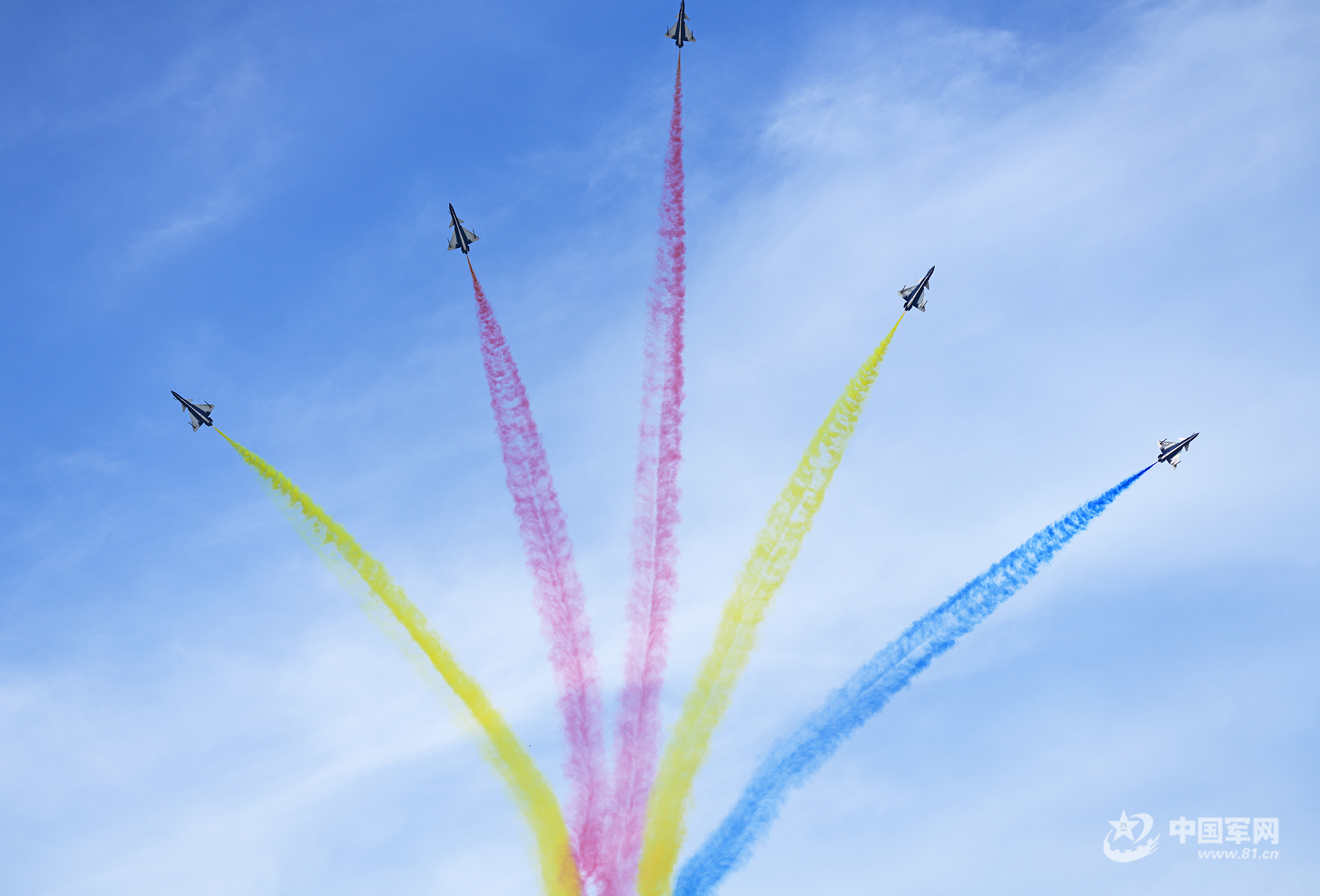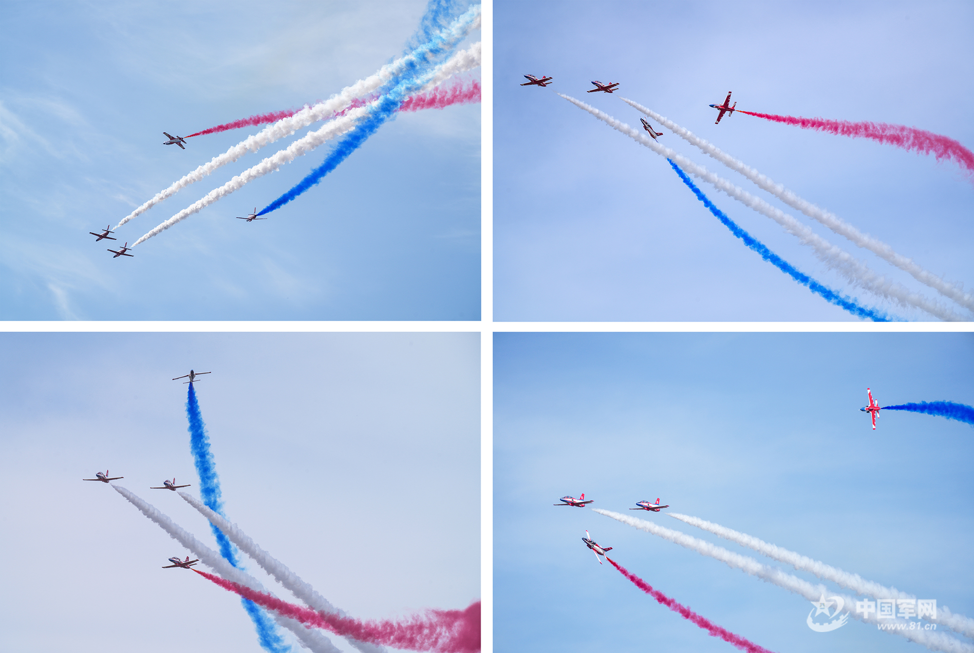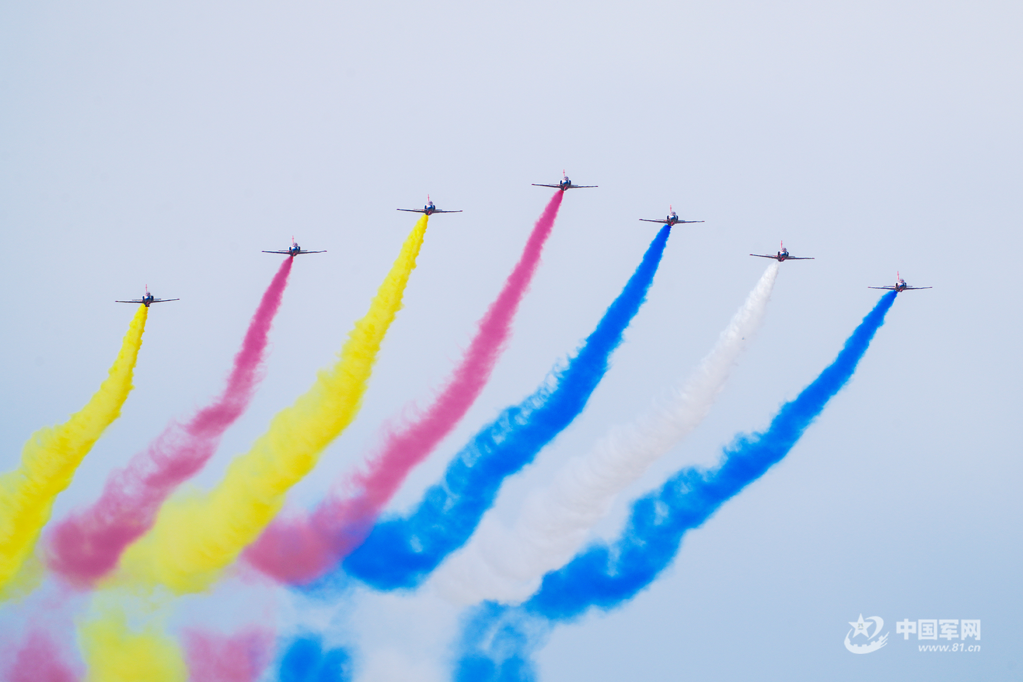 八一飛行表演隊紅黃藍彩煙劃過天際