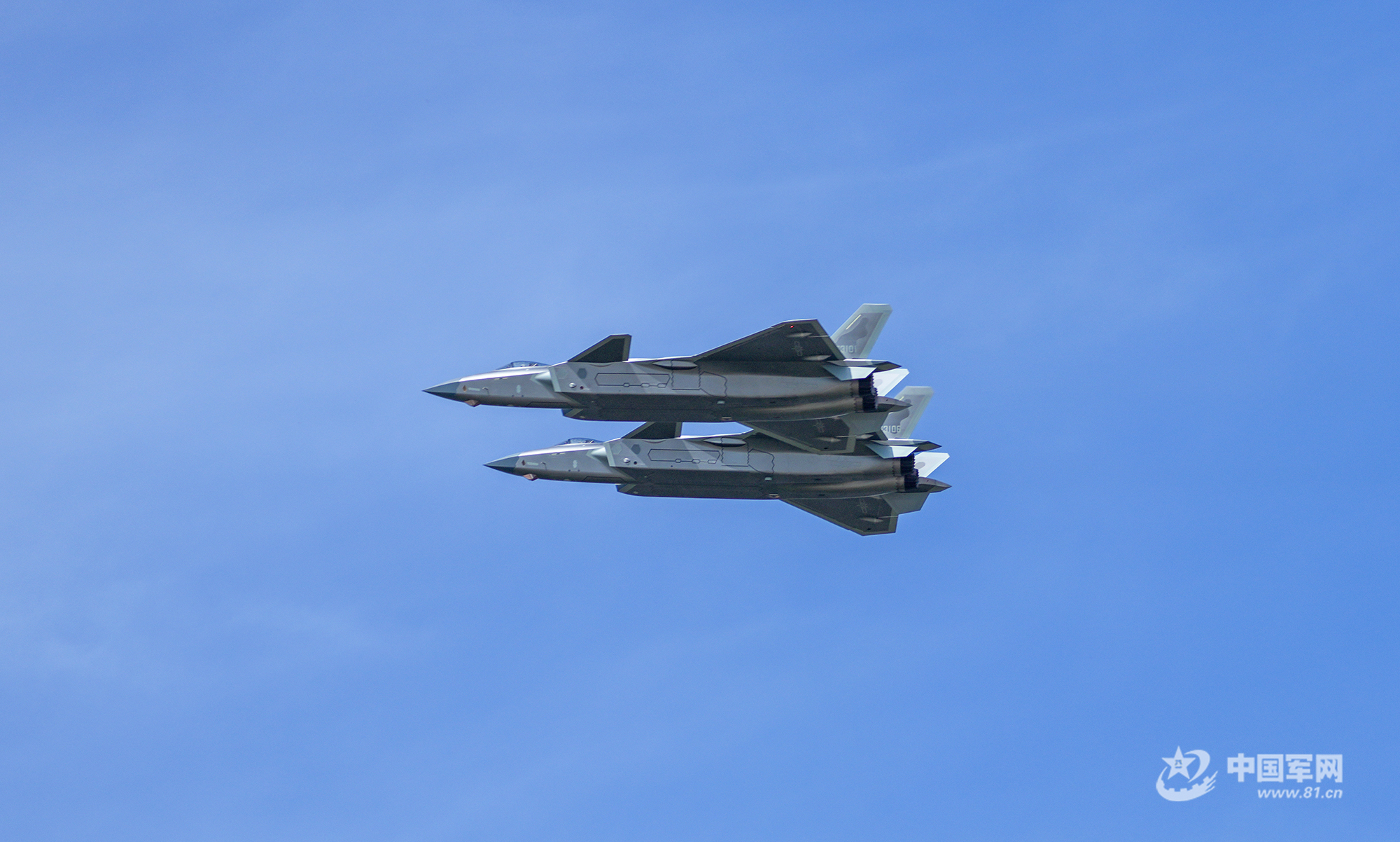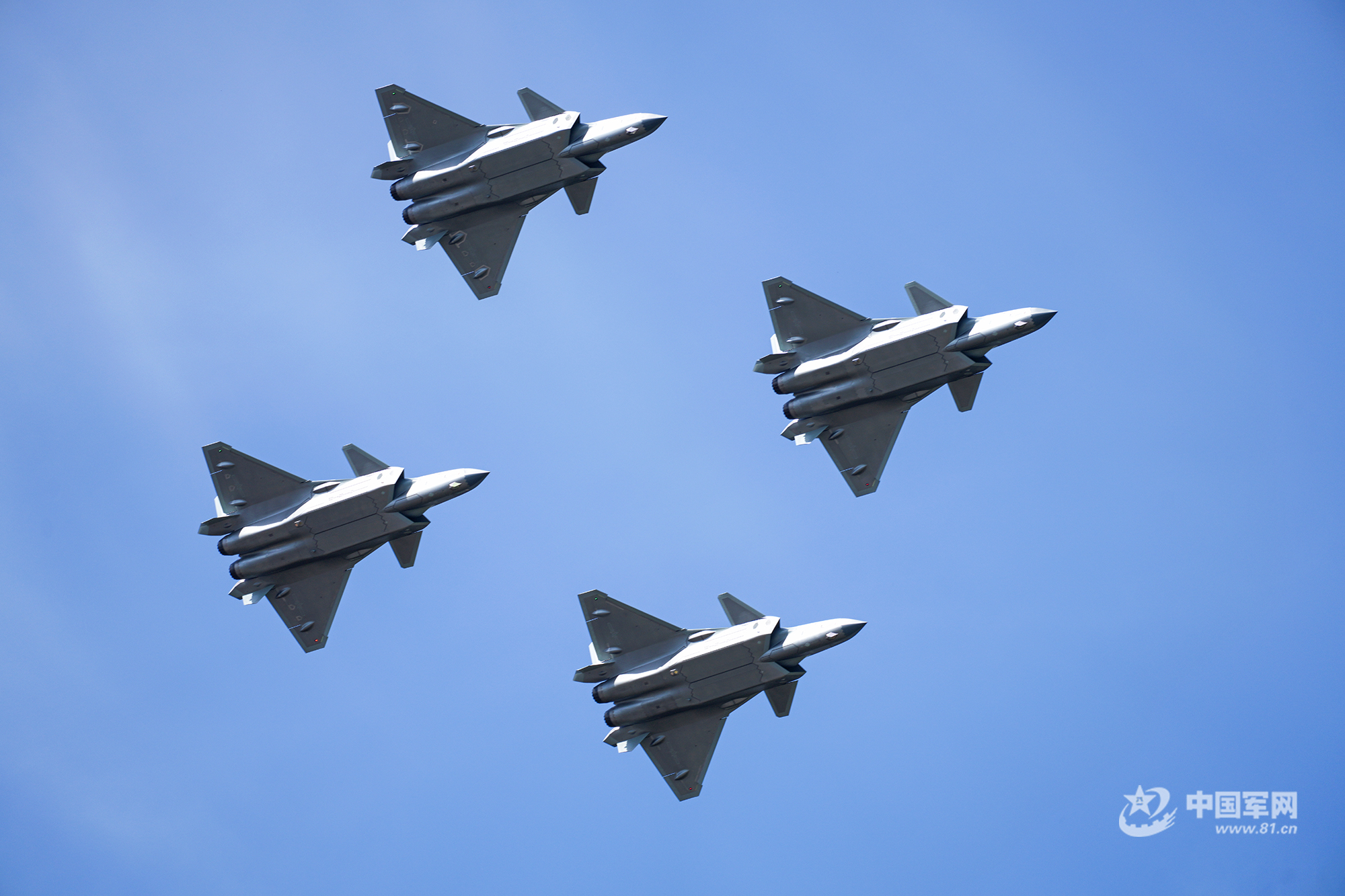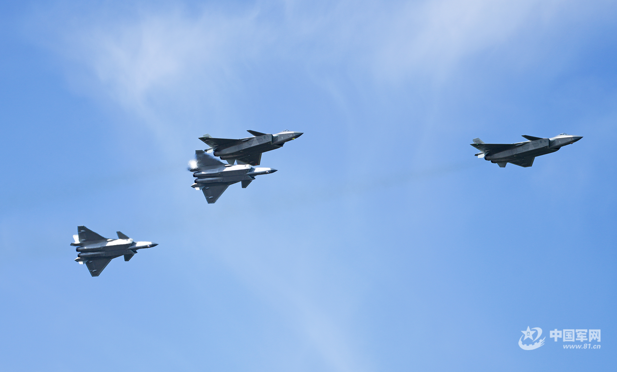 殲-20四機編隊藍天勁舞