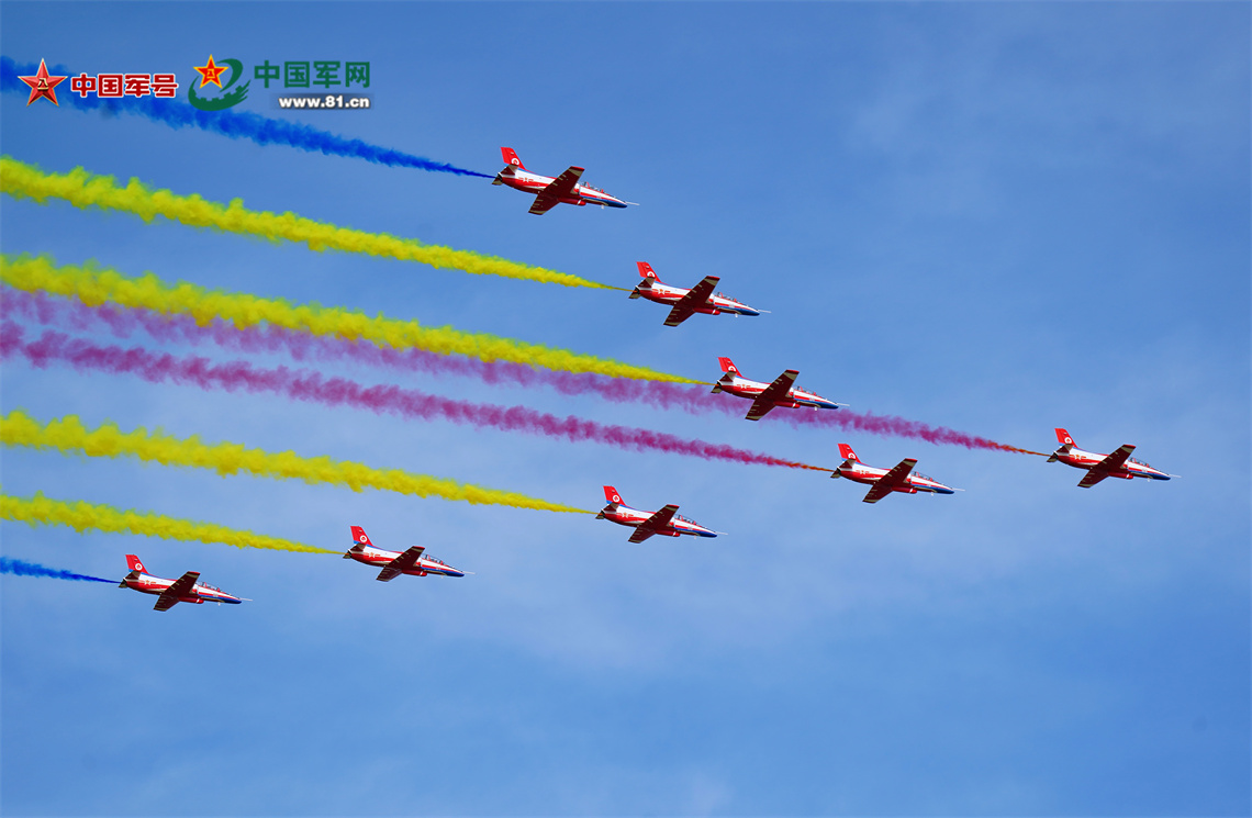 9月19日上午,第十一屆空軍航空開放活動和長春航空展在吉林長春開幕。這是“八一”飛行表演隊(duì)帶來精彩表演。中國軍網(wǎng)記者鄭欣宇 攝