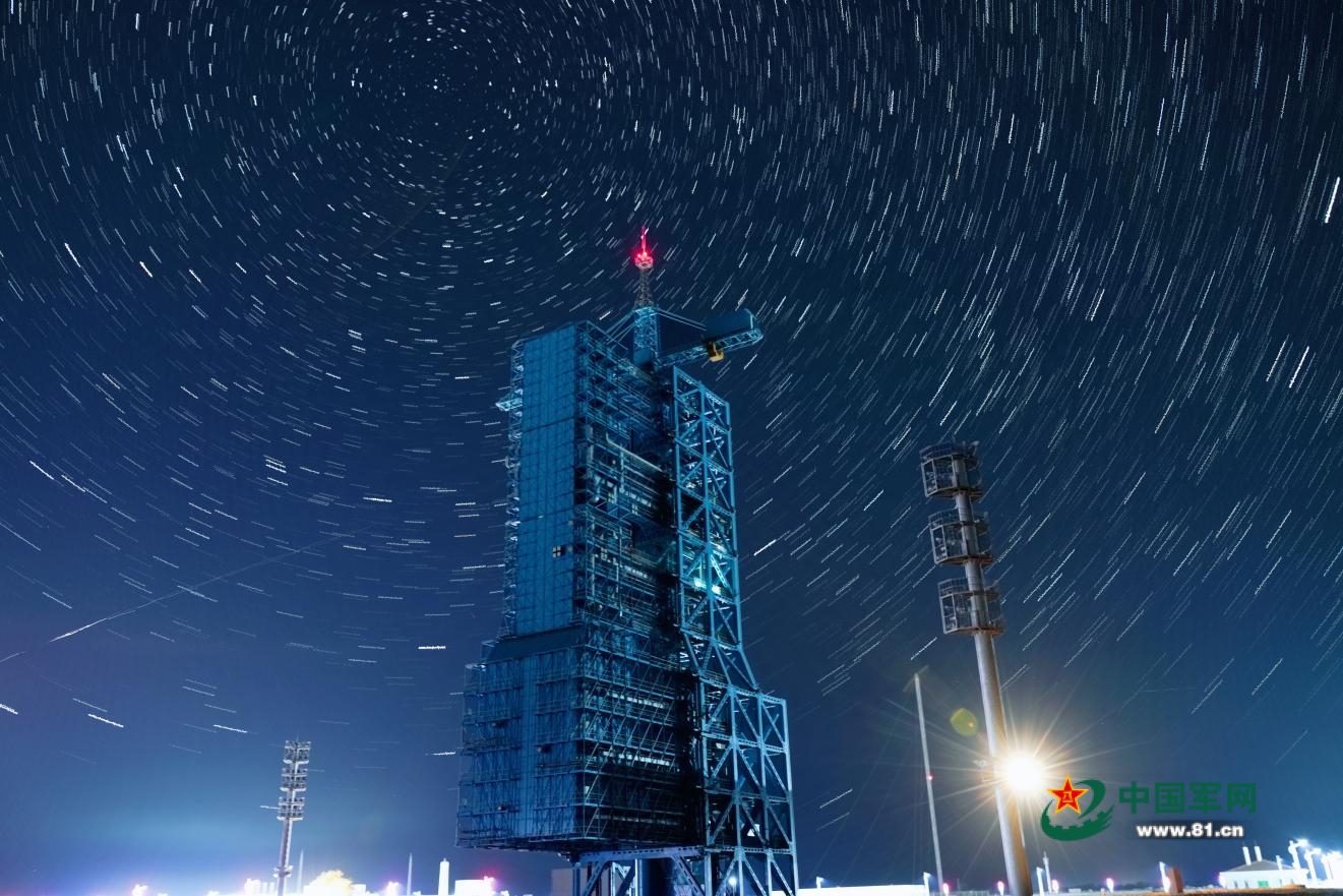 發(fā)射塔架上空的星軌。郝裕彤?dāng)z