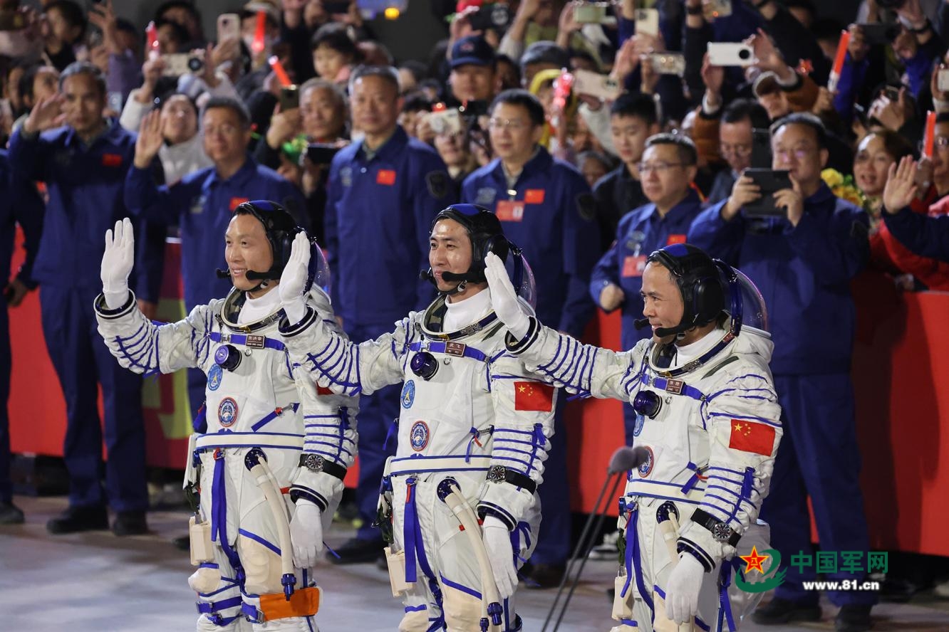三名航天員的報告聲堅毅昂揚。他們身后,揮舞國旗的人群中,有孩子騎在父親肩頭,有老人輕輕擦拭眼淚。在《歌唱祖國》的嘹亮歌聲中,三位英雄揮手登車。