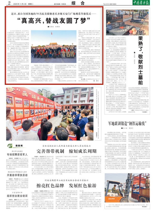 近日,來(lái)自全國(guó)各地的75名抗美援朝老兵齊聚天安門(mén)廣場(chǎng)觀看升旗儀式——