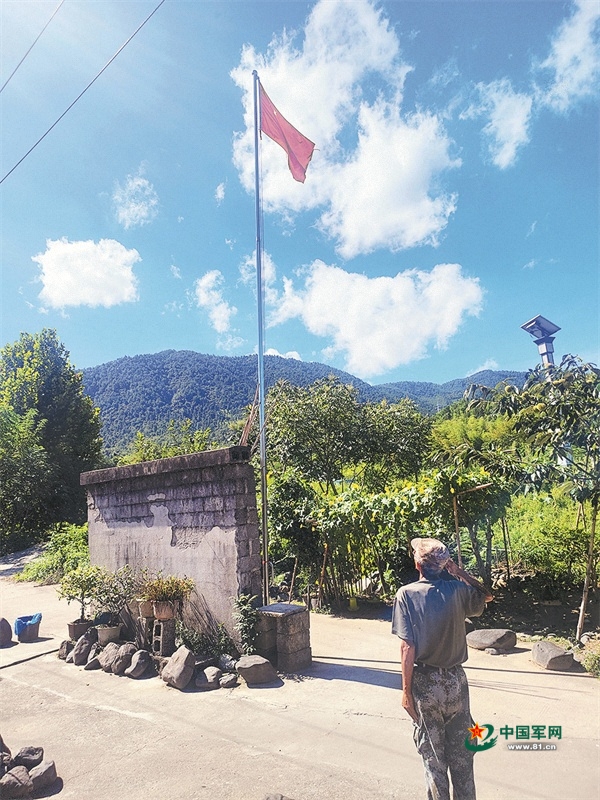 安徽省旌德縣三溪社區(qū)一條蜿蜒山路的盡頭,有一座普普通通的農(nóng)家小院。院子靠山而建,中央有座青石壘就的旗臺(tái),沒(méi)有一絲雜草,旗臺(tái)中央矗立著一根5米高的旗桿。