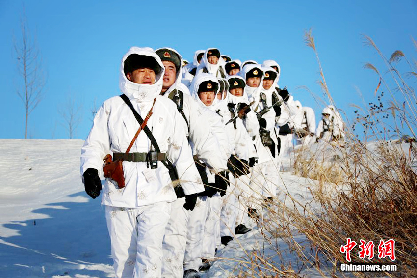 1月4日,沈陽軍區(qū)某紅軍師所屬部隊數(shù)千名官兵正在野外行軍。新年伊始,該部隊分兵數(shù)路,挺進東北的林海雪原,拉開了冬季訓練序幕。中新社發(fā)李祥輝攝
