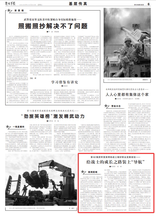該旅人力資源科科長對此感觸頗深:“人才培養(yǎng)不可能一蹴而就,唯有以科學(xué)合理的規(guī)劃為指引,明確成長路徑、搭建成長階梯,方能充分激發(fā)人才潛能,讓官兵各展所長。”