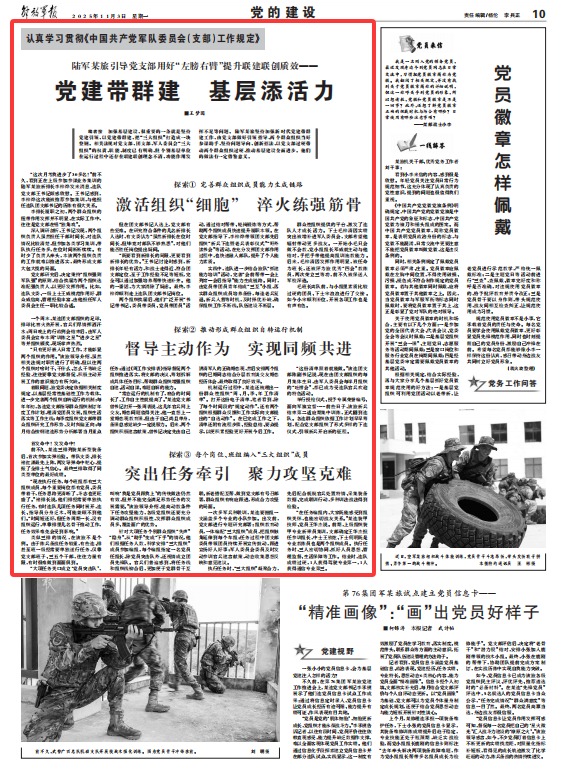 陸軍某旅引導(dǎo)黨支部用好“左膀右臂”提升聯(lián)建聯(lián)創(chuàng)質(zhì)效