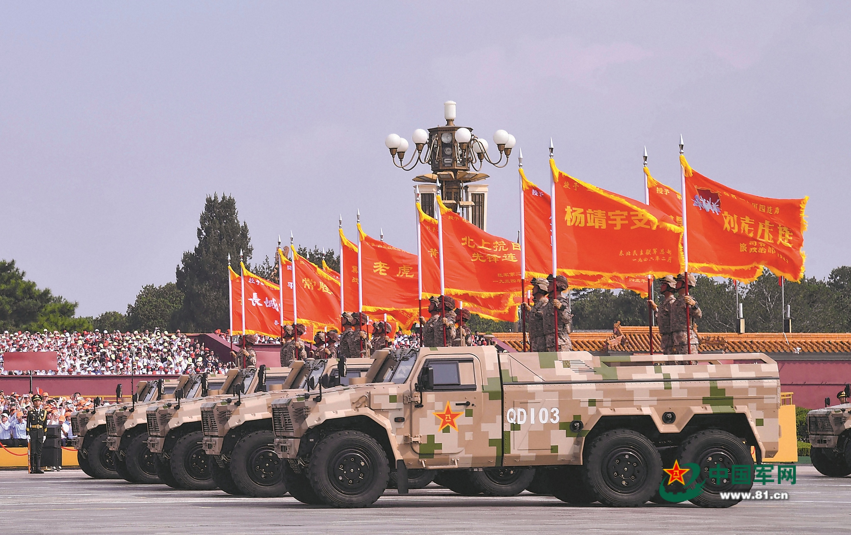 紀(jì)念中國人民抗日戰(zhàn)爭暨世界反法西斯戰(zhàn)爭勝利80周年閱兵式上,戰(zhàn)旗方隊(duì)氣勢如虹?!皠⒗锨f連”戰(zhàn)旗在其中迎風(fēng)飄揚(yáng),接受黨和人民檢閱。解放軍報(bào)記者 張雷 攝