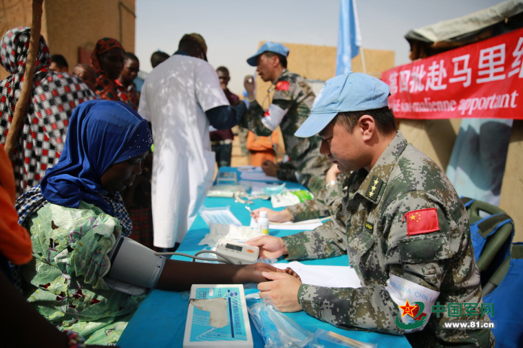 醫(yī)療隊(duì)員為當(dāng)?shù)鼐用駵y(cè)量血壓。趙子權(quán) 攝