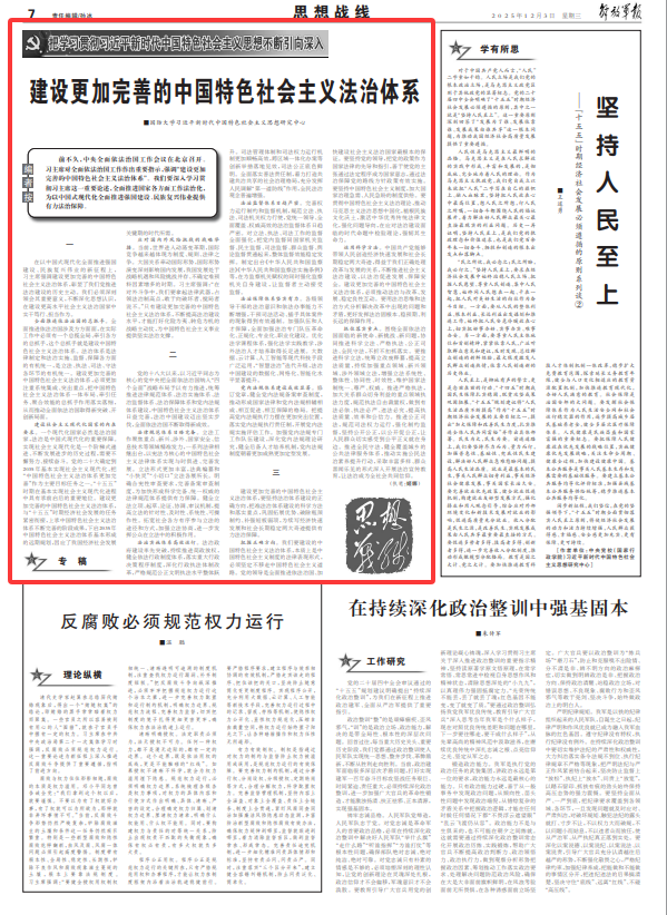 前不久,中央全面依法治國工作會(huì)議在北京召開。習(xí)主席對(duì)全面依法治國工作作出重要指示,強(qiáng)調(diào)“建設(shè)更加完善的中國特色社會(huì)主義法治體系”。我們要深入學(xué)習(xí)貫徹習(xí)主席這一重要論述,全面推進(jìn)國家各方面工作法治化,為以中國式現(xiàn)代化全面推進(jìn)強(qiáng)國建設(shè)、民族復(fù)興偉業(yè)提供有力法治保障。