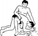 首先使呼吸道暢通,立即清除口、鼻腔內(nèi)的異物,并將舌頭戡出,以免舌后翻阻塞呼吸道。迅速進行倒水動作以倒出呼吸道及胃內(nèi)積水。如呼吸和心臟停止跳動,應(yīng)同時進行人工呼吸和心臟按壓。