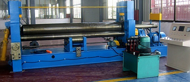 卷板機(jī)是對(duì)板材進(jìn)行連續(xù)點(diǎn)彎曲的塑形機(jī)床,具有卷制O型、U型、多段R等不同形狀板材的功能。卷板機(jī)由于使用的領(lǐng)域不同,種類(lèi)也不同。從輥數(shù)上分為三輥卷板機(jī)和四輥卷板機(jī)。三輥又分對(duì)稱(chēng)式三輥卷板機(jī),水平下調(diào)式三棍卷板機(jī),弧線(xiàn)下調(diào)式卷板機(jī),上輥萬(wàn)能式三輥卷板機(jī),液壓數(shù)控卷板機(jī)。從傳動(dòng)上分機(jī)械式和液壓式。