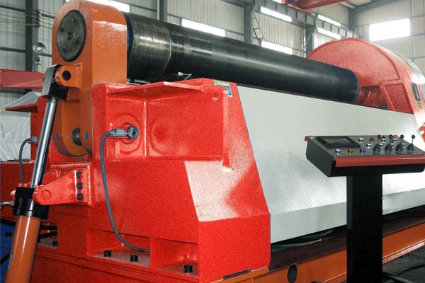 卷板機(jī)上輥在兩下輥中央對(duì)稱(chēng)位置通過(guò)液壓缸內(nèi)的液壓油作用于活塞作垂直升降運(yùn)動(dòng),通過(guò)主減速機(jī)的末級(jí)齒輪帶動(dòng)兩下輥齒輪嚙合作旋轉(zhuǎn)運(yùn)動(dòng),為卷制板材提供扭矩。三輥卷板機(jī)有機(jī)械式和液壓式:機(jī)械式三輥卷板機(jī)分為對(duì)稱(chēng)和非對(duì)稱(chēng)。可將金屬板材卷成圓形、弧形和一定范圍內(nèi)的錐形工件。