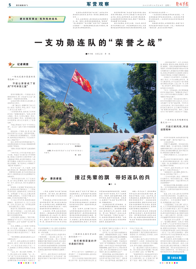 盡管在機關(guān)工作時已對連隊的歷史和榮譽有所了解,但當真正面對這樣一支歷經(jīng)戰(zhàn)火洗禮、功勛戰(zhàn)績卓著、使命任務(wù)光榮的紅軍連隊時,一份沉甸甸的責任和壓力瞬間涌上心頭。