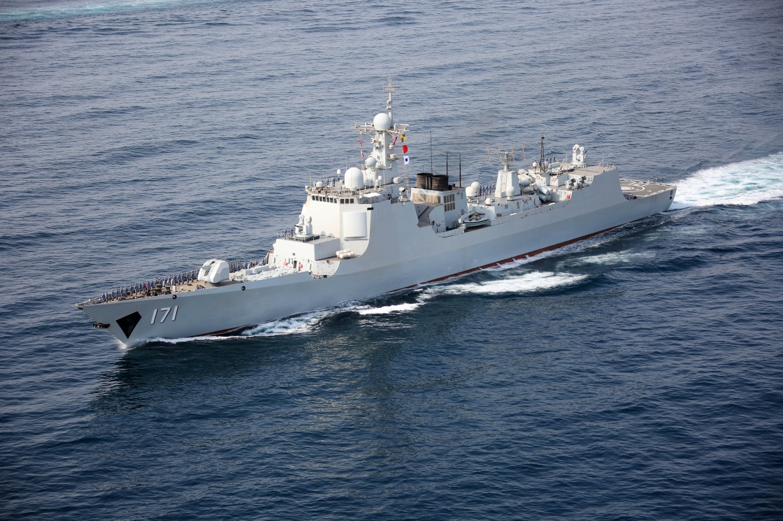 2014年6月,海口艦與多艘艦艇組成編隊(duì),參加多國海上聯(lián)演。這是??谂炇状卧谀吧S蜻M(jìn)行高強(qiáng)度聯(lián)演聯(lián)訓(xùn);
