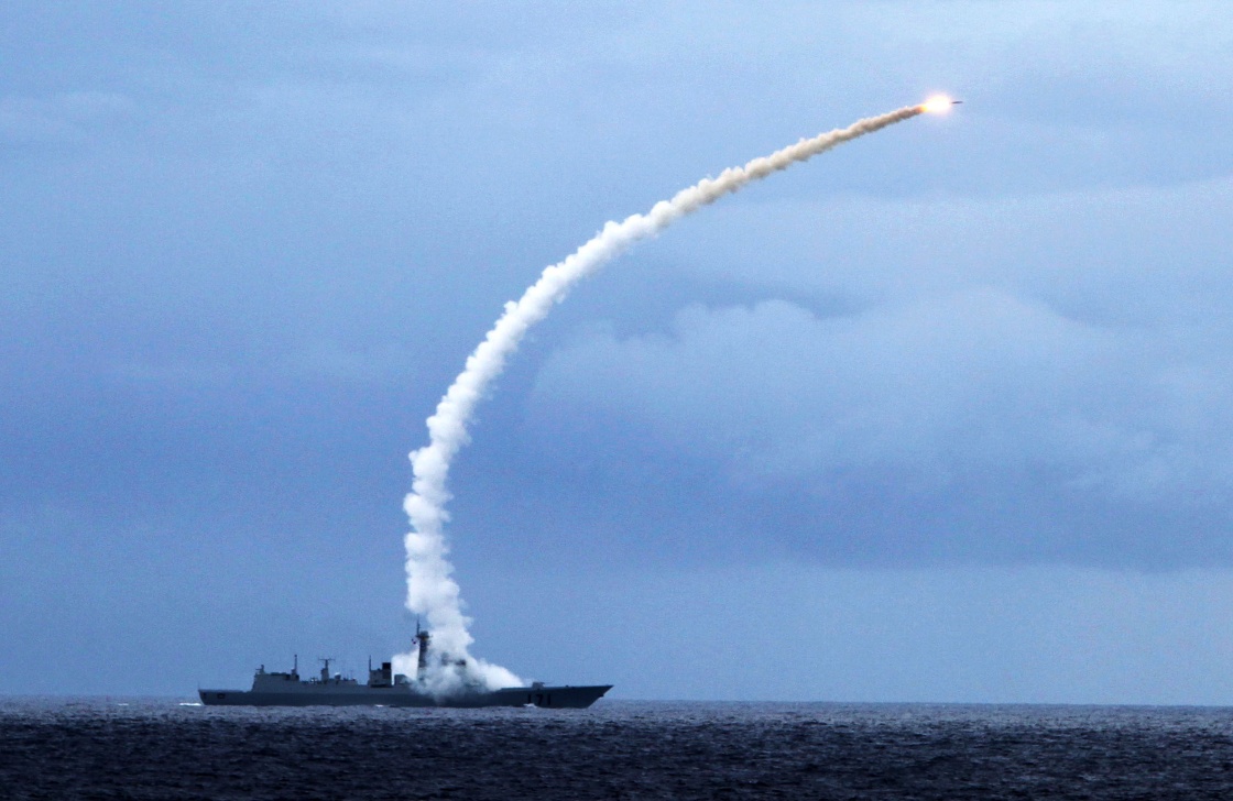??谂炘趯崗椦萘?xí)中發(fā)射艦空導(dǎo)彈攔截來襲目標(biāo)(2010年7月26日攝)。新華社發(fā)