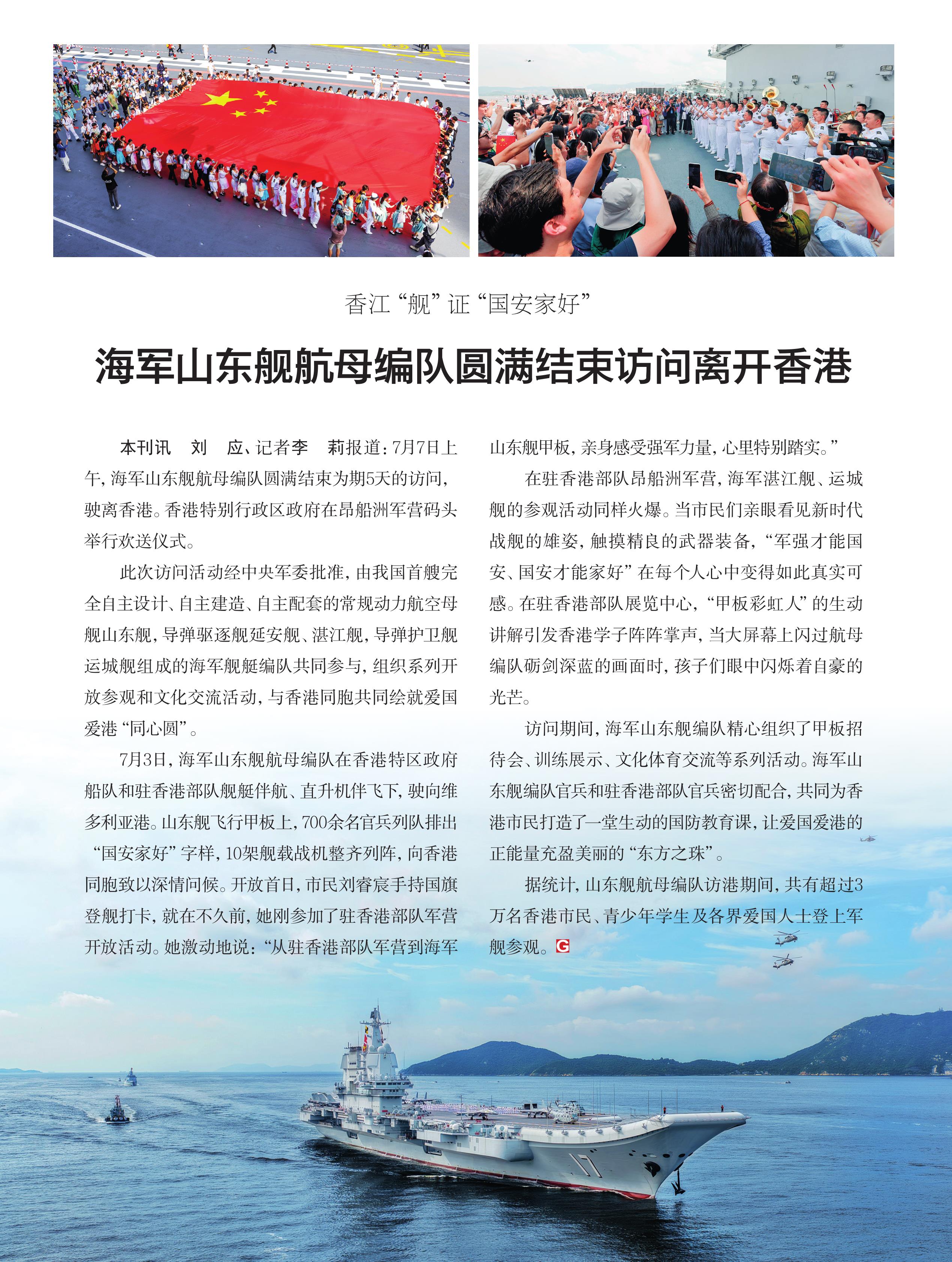 海軍山東艦航母編隊(duì)圓滿結(jié)束訪問離開香港