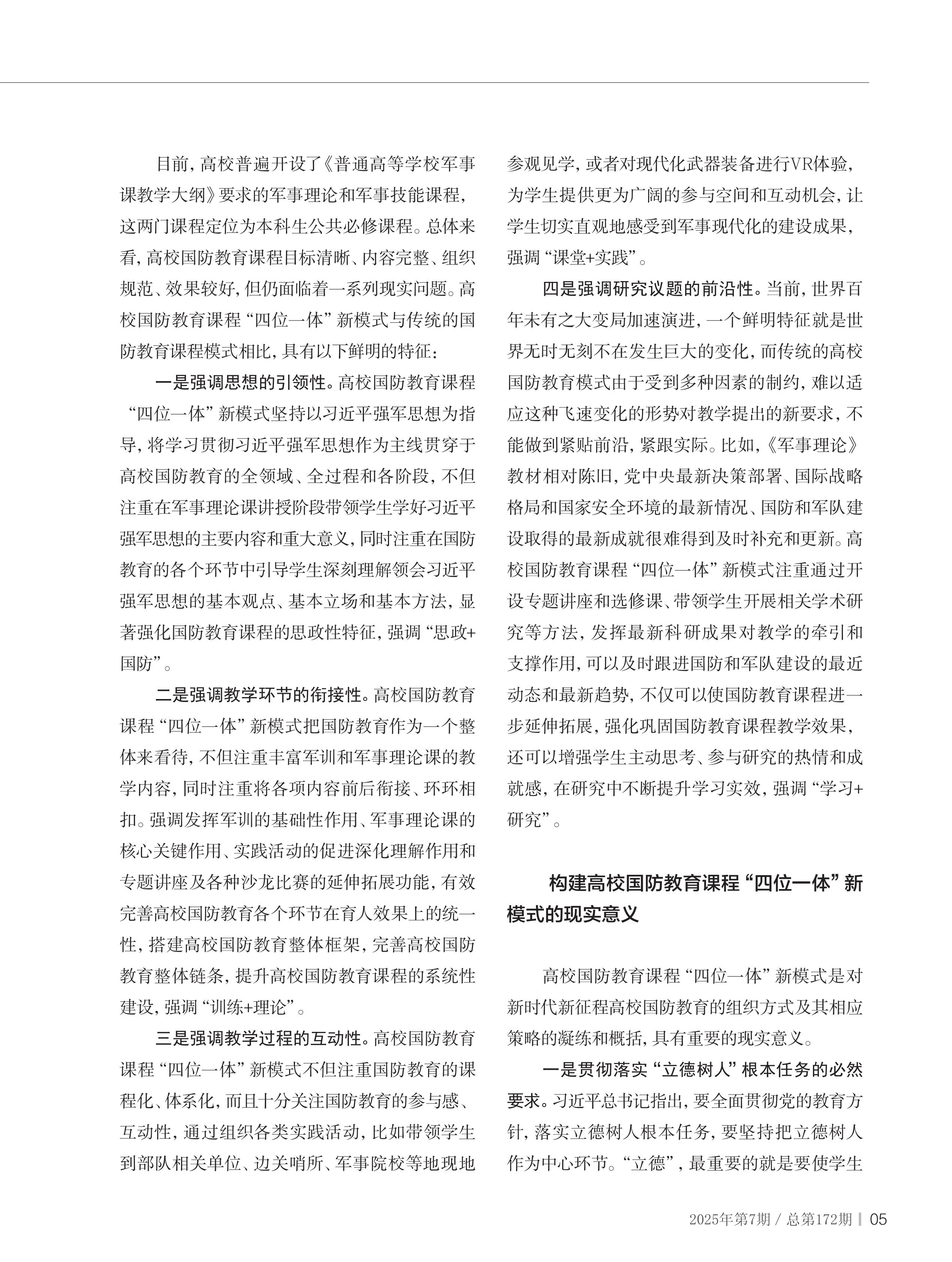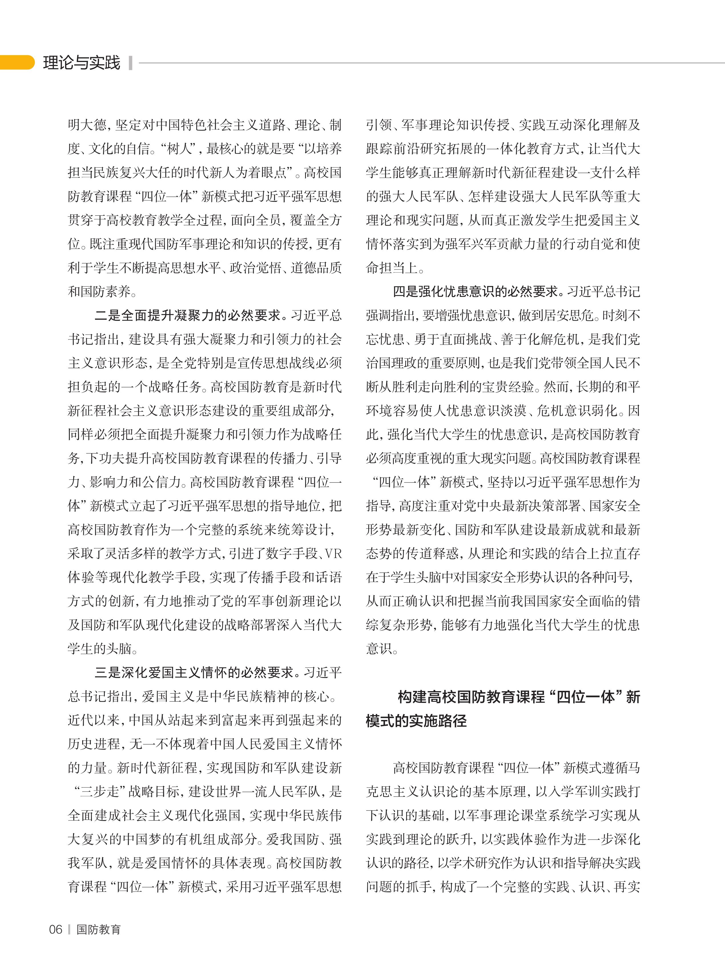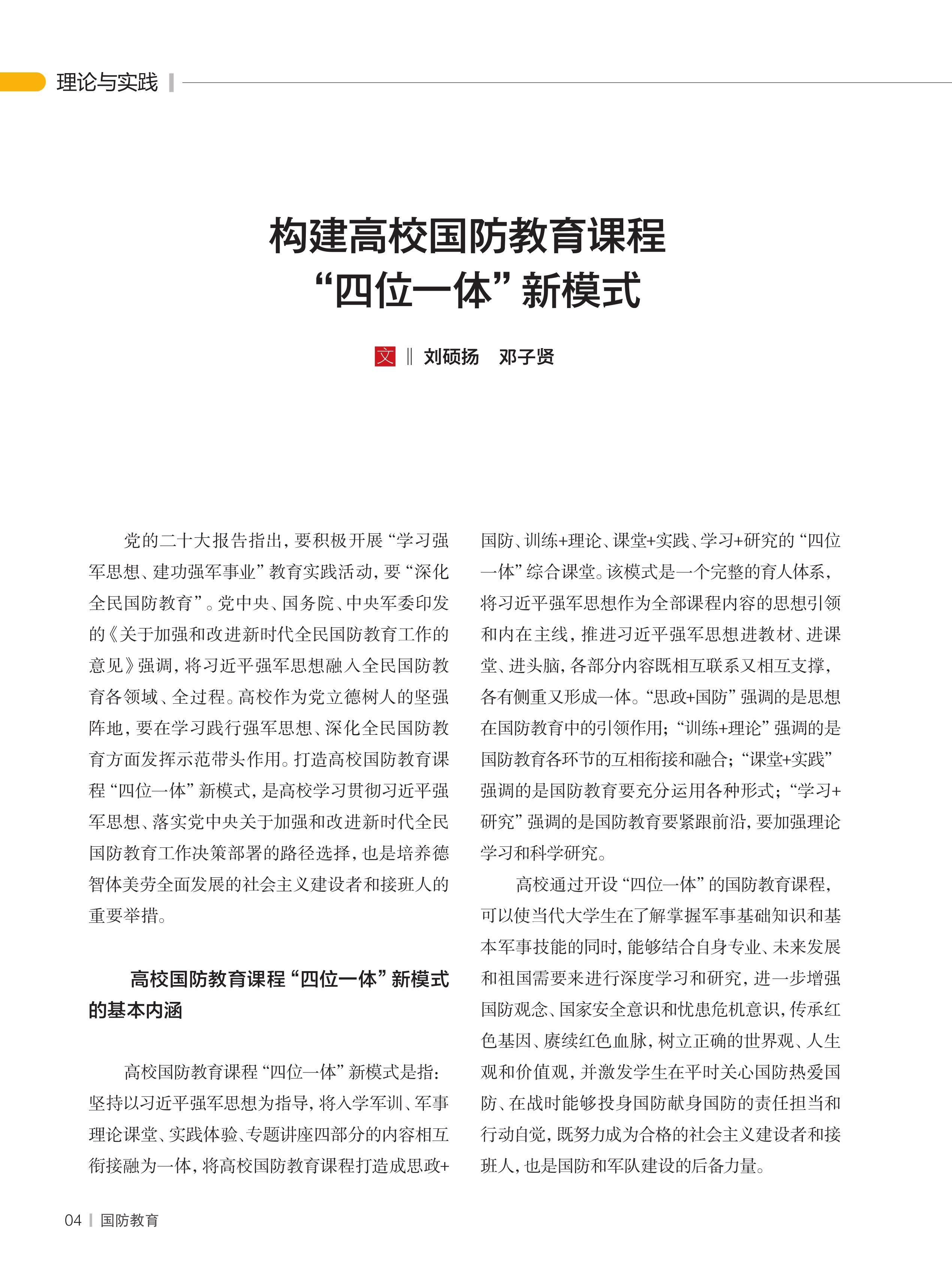 構(gòu)建高校國(guó)防教育課程“四位一體”新模式