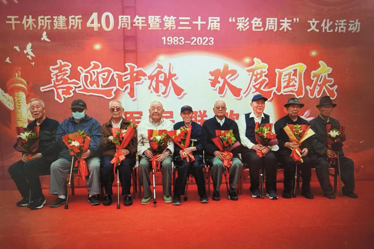 閆可風(fēng)(左五)參加所在干休所建所40周年暨第三十屆“彩色周末”文化活動。