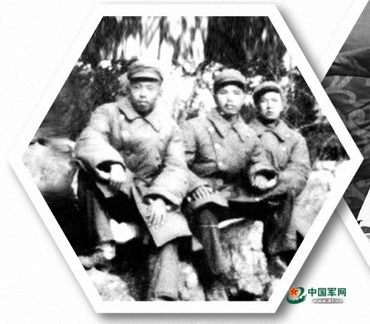 唐兆賢(中)與戰(zhàn)友鄭長暉(左)、應(yīng)家琪(右)赴朝前合影。