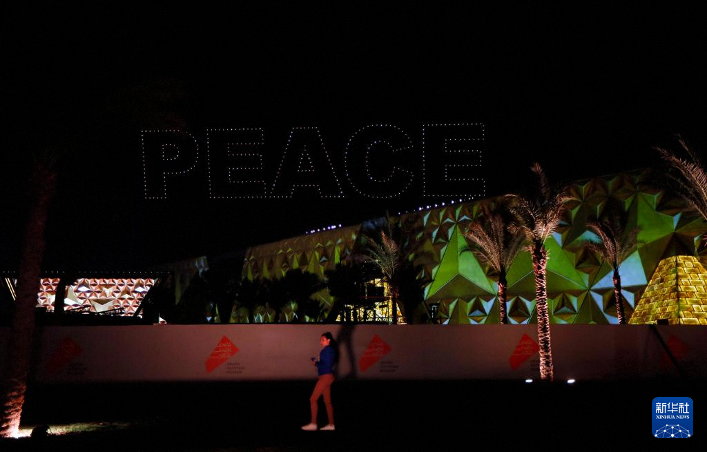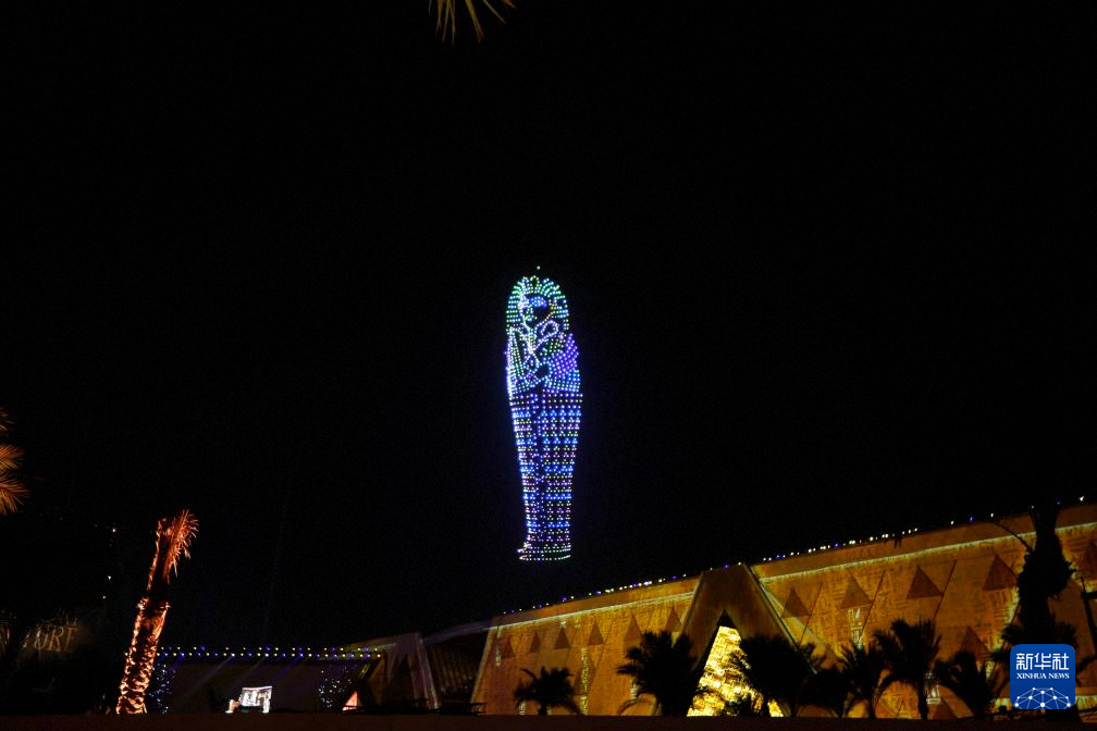 這是11月1日在埃及吉薩拍攝的開館儀式上的無人機表演和燈光秀。新華社發(fā)(艾哈邁德·戈馬攝)