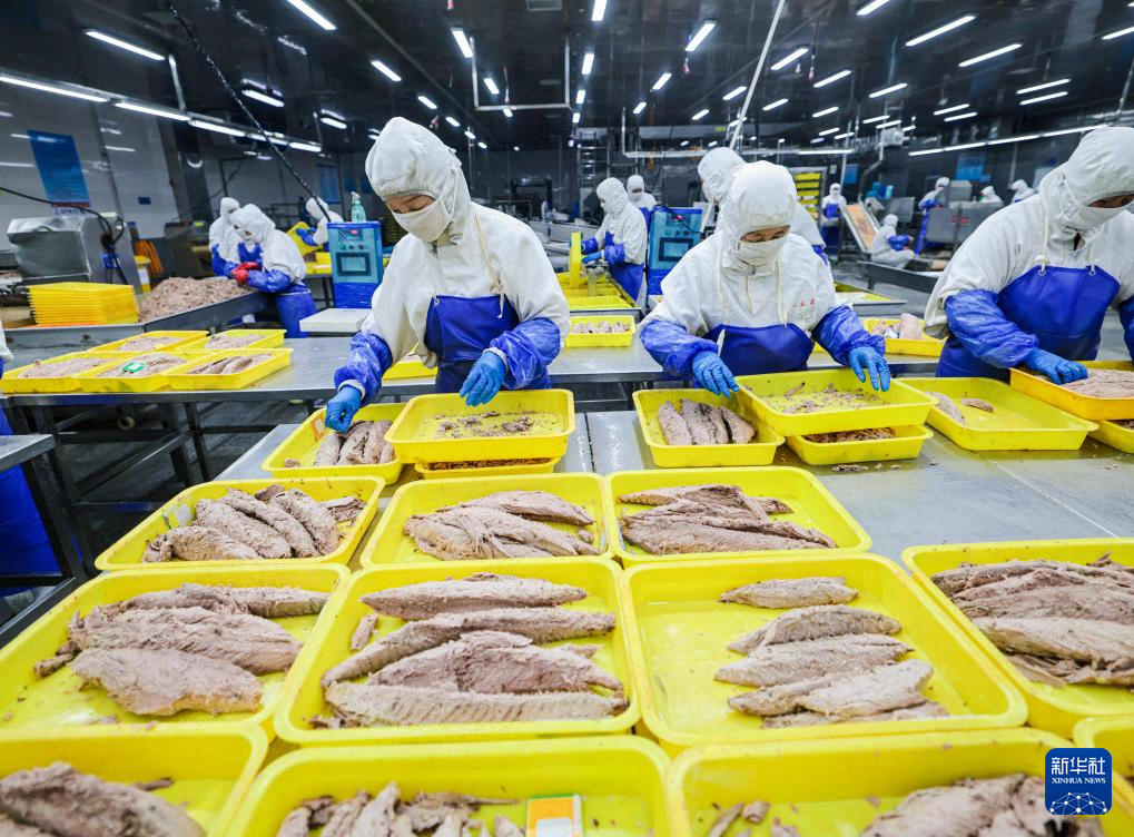 11月10日,山東省榮成市俚島鎮(zhèn)一家水產(chǎn)品加工企業(yè)的工人在加工鱈魚制品。新華社發(fā)(李信君 攝)